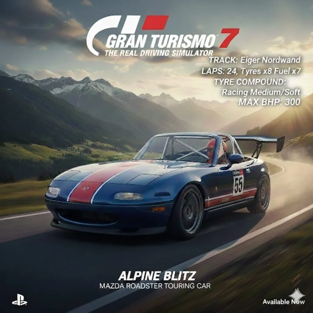 - Race DetailsOther-Mazda Roadster Touring Car, max bhp 300, racing soft and mediums-x8-x7