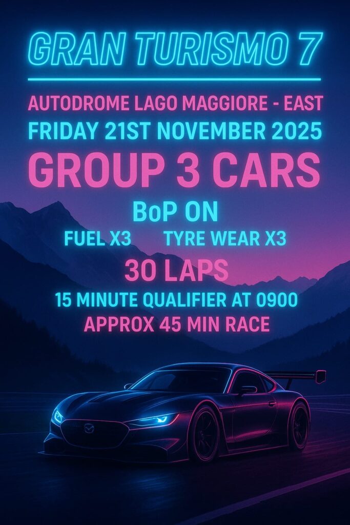 - Race Details Gr3 - BOP - Tyre x3 - Fuel x3 - 30 Laps - Soft/Medium/Hard